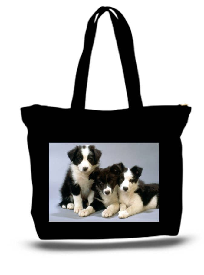 Puppies Black And White Border Collie Pups Large Tote Bag